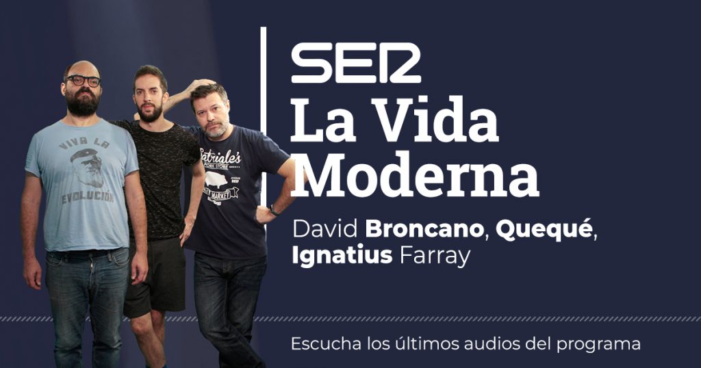Para finalizar este artículo, hablaremos de La Vida Moderna, uno de los pódcast más animados y populares en España. Presentado por reconocidos humoristas como David Broncano Quequé e Ignatius Farray, La vida moderna consta de una serie de episodios de, aproximadamente, media hora de duración. Todos los programas están divididos en diferentes secciones habituales, entre las cuales se encuentran “A pijo sacao”, una sección en la que se comentan improvisadamente diferentes noticias; “El brasilleiro”, sección en la que los tres presentadores hacen un breve repaso a la actualidad de la semana comentando noticias que propone David Broncano; “Pídeselo a Quequé”, donde la audiencia formula diferentes peticiones a Quequé; así como otra serie de secciones esporádicas.