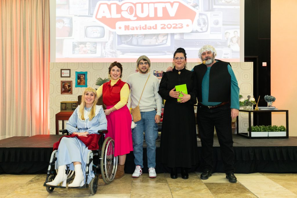 La gala comenzó con el desfile de participantes. Cada equipo de disfraces tomó el escenario para lucir su disfraz. Seguidamente, tuvo lugar el estreno en primicia del video de Navidad Alquiber 2023, en el que compañeros de casi todas las delegaciones de Alquiber se coordinaron para crear un video emblemático con un temazo que todo el mundo ha bailado alguna vez: “Saturday Night” pero con un toque más actual, ya que utilizamos un remix de esta canción con la versión de Aitana “Las Babys”. Nuestra compañera María Blanco fue quien hizo la magia de unir todos los videos de cada delegación y crear esta maravilla que os dejamos a continuación.
