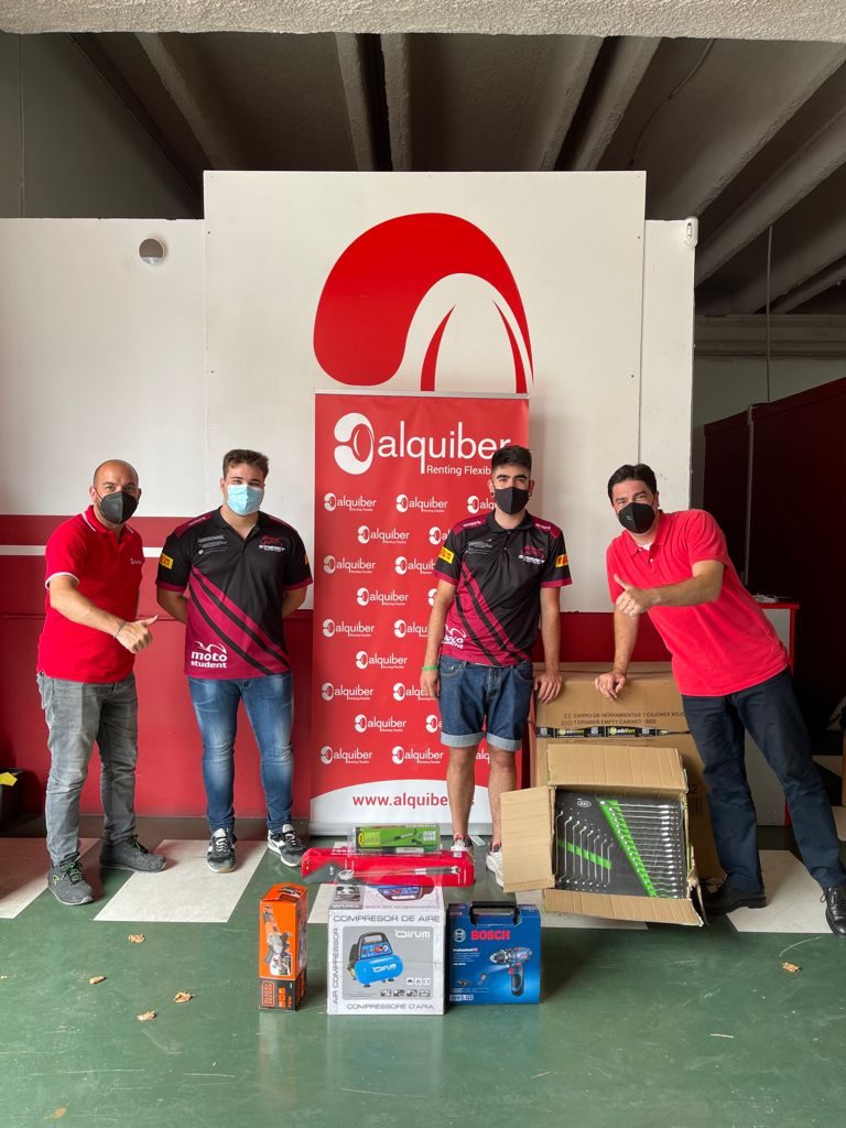 Así, el pasado 17 de junio les entregamos en nuestra delegación de Barcelona un lote completo de herramientas de taller que les ayudarían en el ensamblaje, ajustes y reparaciones de su prototipo tanto en la preparación como en la propia competición. Además, prácticamente un mes después, les proporcionamos un furgón grande para trasladar la propia moto, las herramientas y el resto de equipamiento.