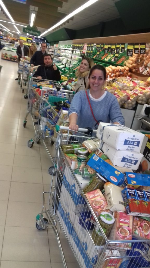Es esta ocasión, realizamos la compra el día 1 de abril. Para ello, se pidió la ayuda de voluntarios. Acudimos a un supermercado, como si fuese una compra normal, pero no lo fue. Realizamos un pequeño juego: cada persona debía coger todos los productos posibles sin pasarse de un precio por carro. Y todo empezó bien, hasta que se dejó de lado el juego limpio y comenzaron los sabotajes: en cuanto te despistabas ya tenías algo de más o de menos en el carro. Y adiós a las cuentas que estuvieras haciendo. Al final, y por muy poca diferencia, la ganadora de este pequeño juego fue Irene Domínguez, del departamento de alquiler.