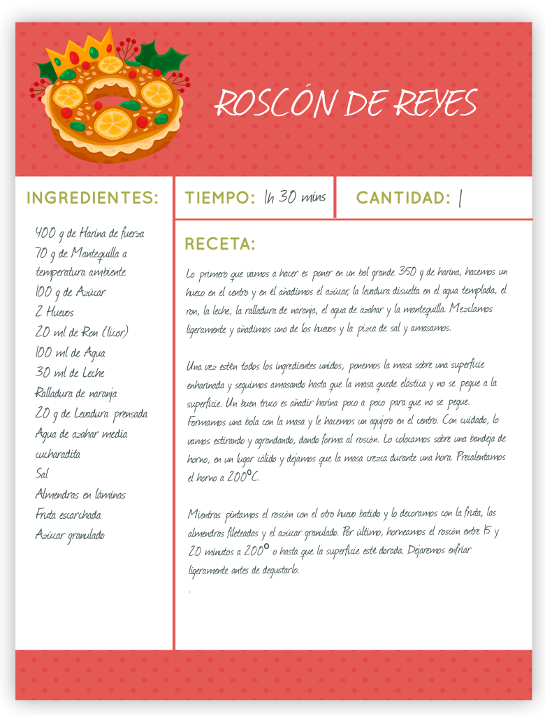 El roscón de reyes es uno de los dulces más tradicionales de Navidad y postre típico de la comida del día de Reyes. Cada roscón lleva escondido una sorpresa y un haba. El que encuentre la sorpresa será coronado como el Rey de la casa y a quien le toque el haba tendrá que comprar otro roscón. En la última edición de este año de la Newsletter, os traemos la receta más fácil y deliciosa para que puedas disfrutar de tu propio roscón de Reyes (y sepas dónde se encuentra el haba).