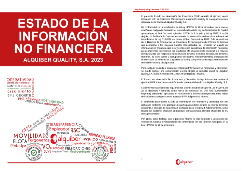 Con este informe, Alquiber se posiciona como una empresa que no solo busca el éxito financiero, sino que también se preocupa por el impacto de sus operaciones en la sociedad y el medio ambiente. Este primer EINF es solo el comienzo de un compromiso continuo con la mejora y la transparencia en todas nuestras áreas de actuación.