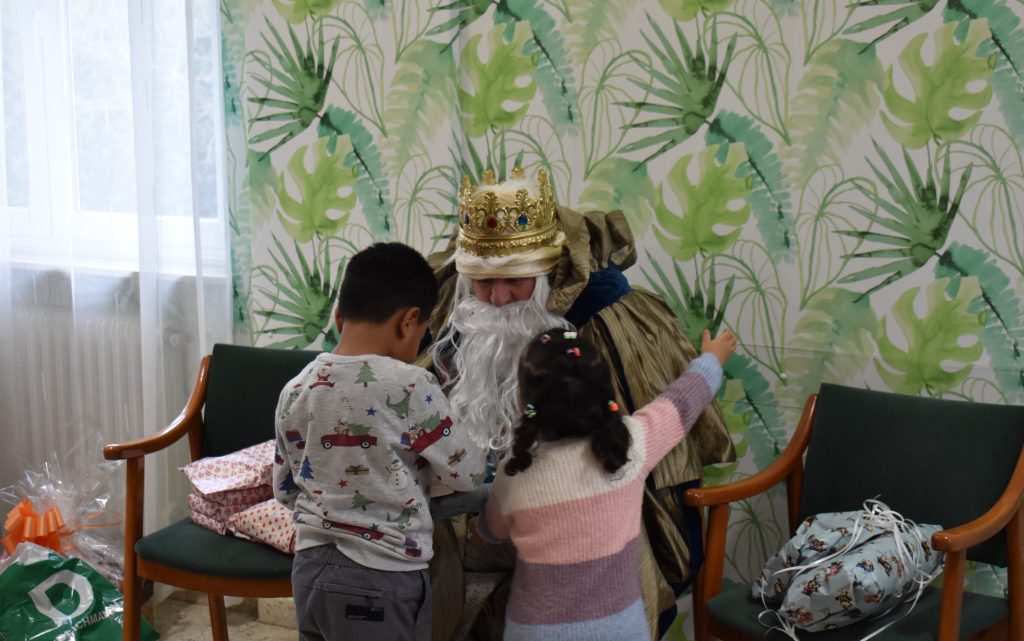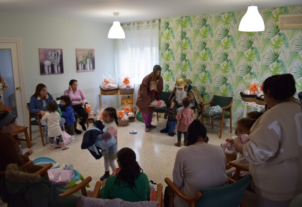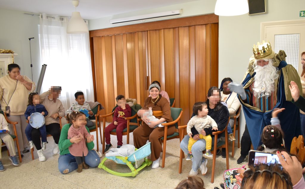 Dos representantes de la empresa, ataviados como el rey Melchor y uno de sus pajes reales, fueron los encargados de llevarles regalos comprados por los empleados de Alquiber para casi una veintena de niños del centro, así como cestas de regalos para las madres, entregadas por Avanza ONG.