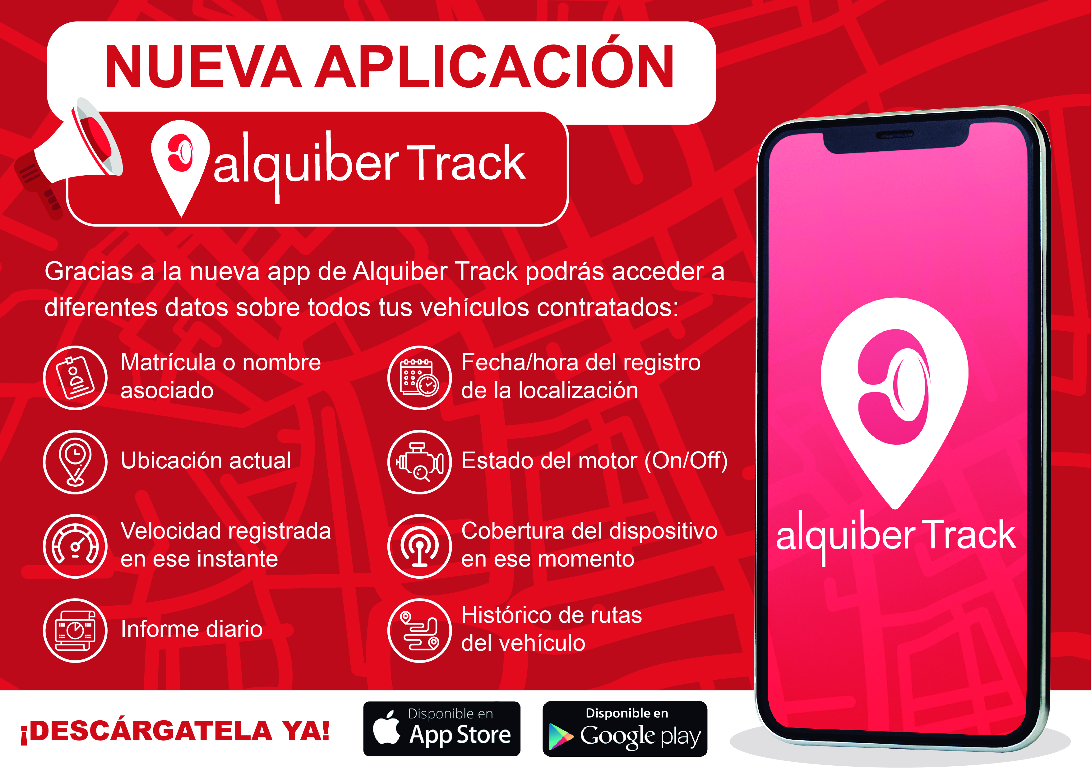 Manteniendo la accesibilidad como meta, recientemente tomamos la iniciativa de mejorar aún más el servicio ofrecido al cliente a través del lanzamiento de la nueva App de Alquiber Track, disponible tanto para IOS como para Android.