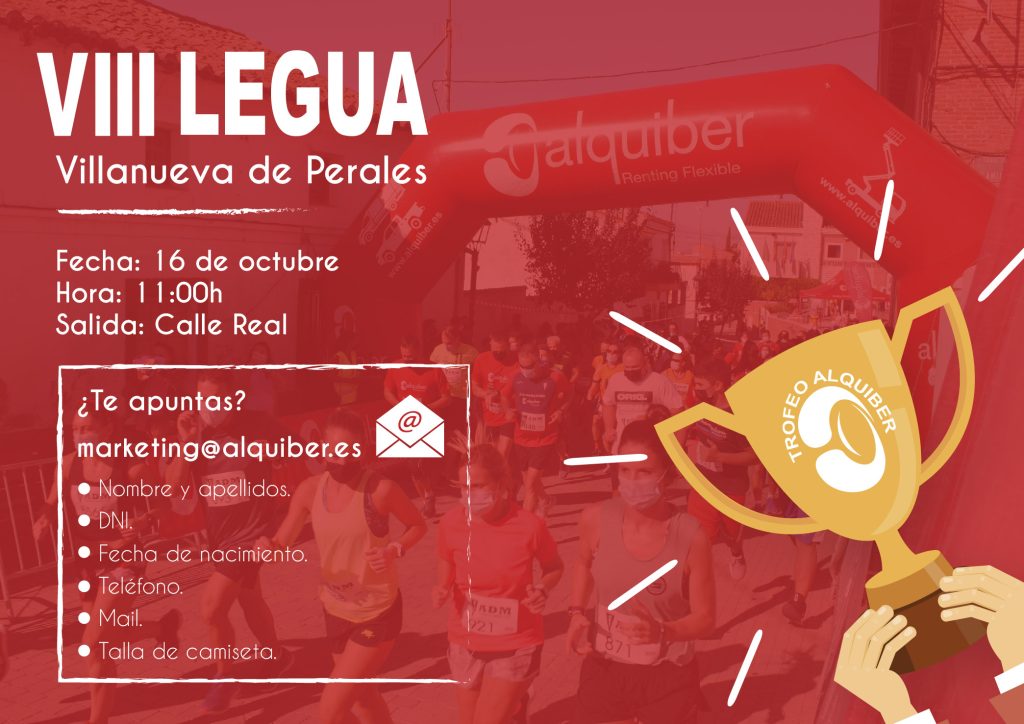 Otro año más, tenemos el placer de comunicaros que repetimos Legua en Villanueva de Perales. Se celebrará el próximo domingo 16 de octubre a las 11:00h. Como cada temporada, el Ayuntamiento de Villanueva de Perales organizará el evento junto a la dirección técnica de la A.D. Marathon. Nos reuniremos con los habitantes del pueblo, visitantes de localidades próximas y alumnos de la A.D. Marathon para disfrutar de una mañana de deporte al aire libre. Podéis venir acompañados de amigos y familiares, tan solo tienes que enviarnos los siguientes datos y los de tus acompañantes al correo electrónico de marketing@alquiber.es: