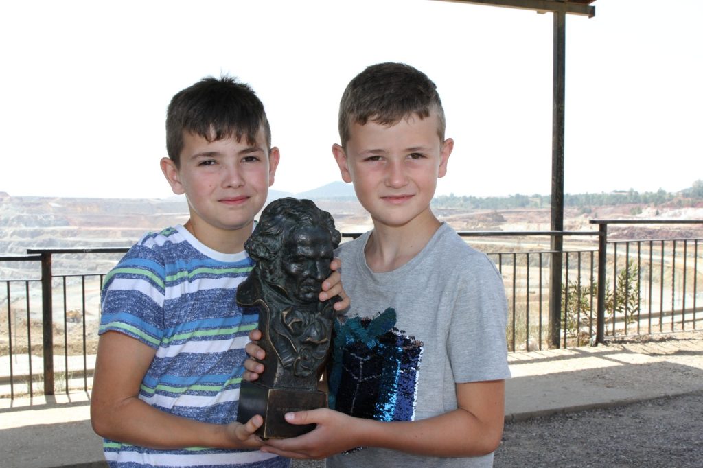 Los dos hijos de María José junto a los hermanos Lagares y el premio Goya