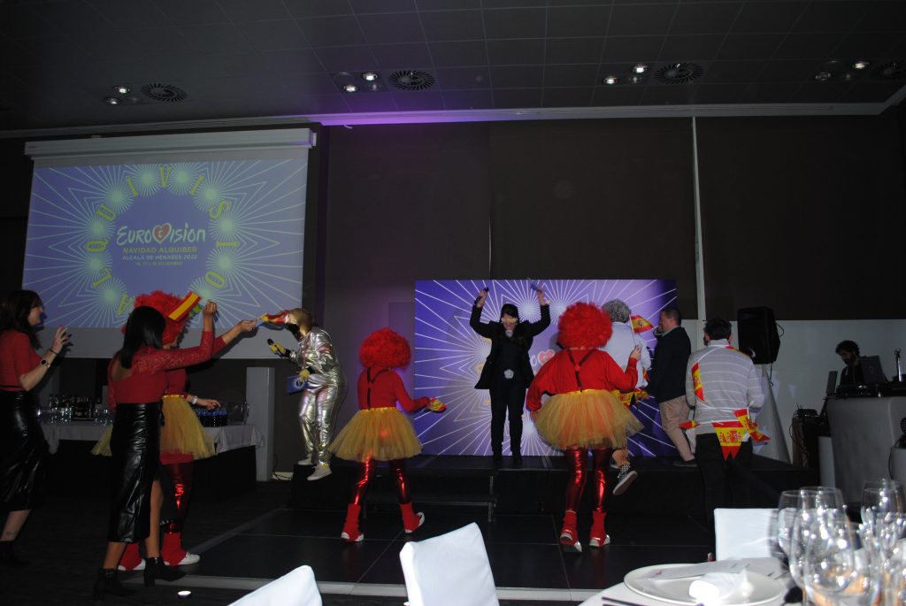 El pasado 16 de diciembre se celebró la gran fiesta de Navidad de Alquiber en Alcalá de Henares. Fue un fin de semana lleno de reencuentros, desconexión y mucha diversión. Entre las muchas actividades que teníamos previstas, la más esperada fue la fiesta de disfraces, que este año se desarrollaría bajo la temática “Eurovisión”. La noche del sábado, el hotel se transformó y pudimos vivir de primera mano una gala final de Eurovisión.