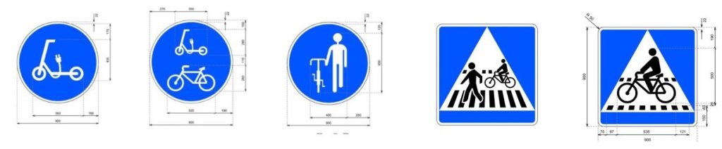 - Señal R-421 informa que la vía señalizada será obligatoria para los patinetes eléctricos y las bicicletas, siendo compartida por ambos.