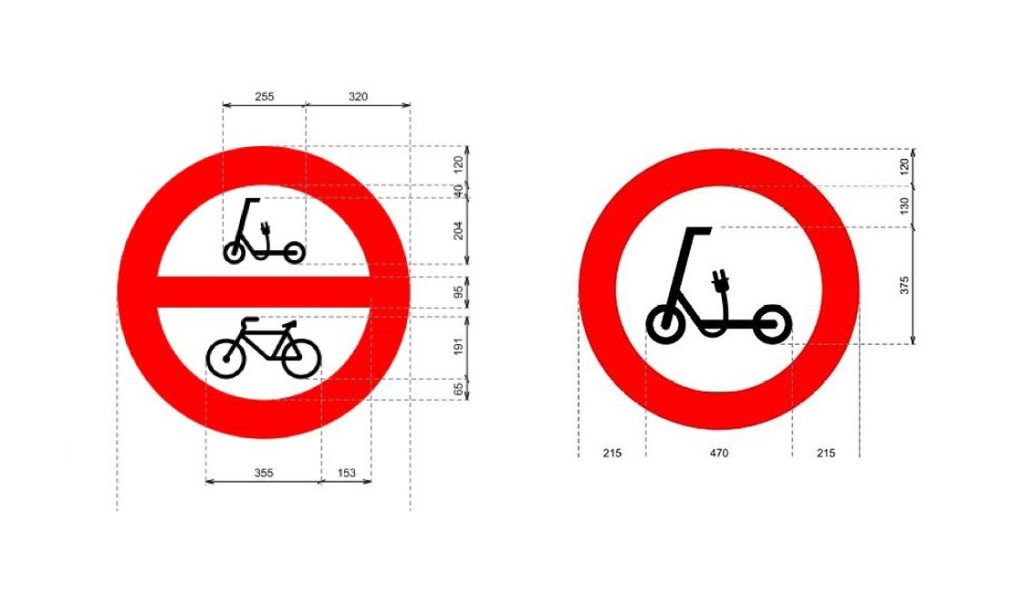 - Señal R-118: prohíbe la circulación de patinetes eléctricos y la R-119 que prohíbe la circulación de patinetes eléctricos y también de bicicletas.
