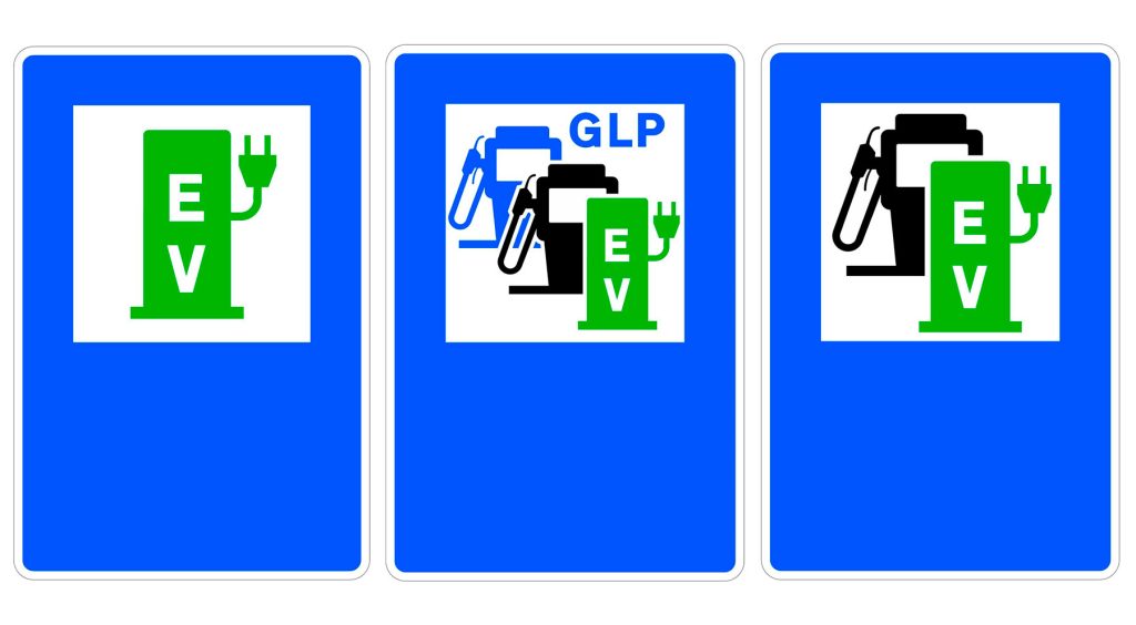 Además, se incluyen las nuevas señales de los diferentes formatos de gasolineras, donde se indica qué surtidores hay en la estación de servicio: para coches eléctricos y carburante GLP (gas licuado de petróleo).