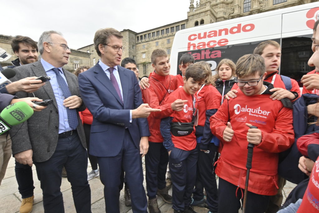 Nos esperaba un día lleno de emociones. Amanecimos temprano para afrontar los últimos kilómetros. Los chicos y chicas no pudieron contener su alegría al entrar a la Plaza del Obradoiro; al fin y al cabo habían demostrado que ellos también son capaces de conseguir todo lo que se proponen. Pero nuestra entrañable peregrinación llamó la atención de toda la región. Nos recibieron Alberto Núñez Feijóo y Xosé Sánchez Bugallo, presidente de la Xunta y alcalde de Santiago, respectivamente, así como otros representantes políticos.