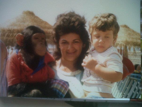 “Siempre me he preguntado si era una moda hacerse fotos con monos a finales de los 80… La única anécdota era que el mono me daba miedo; luego descubrí que son asesinos en potencia, así que tenía más razón que mis jóvenes e inconscientes padres”