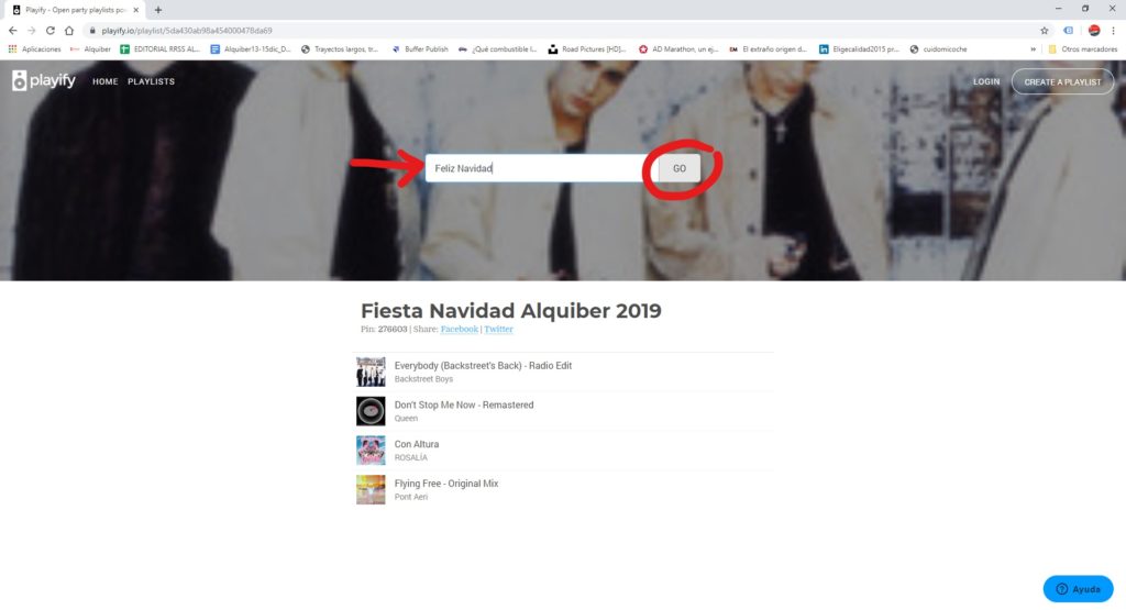 Podrás ver las canciones que ya se han añadido y añadir las que quieras buscando en la barra de búsqueda y pulsando en “GO”
