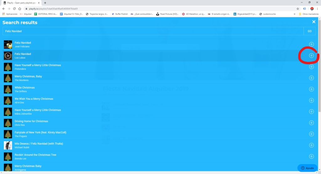 Deberás localizar la canción que buscas y pulsar en el signo de “+”.
